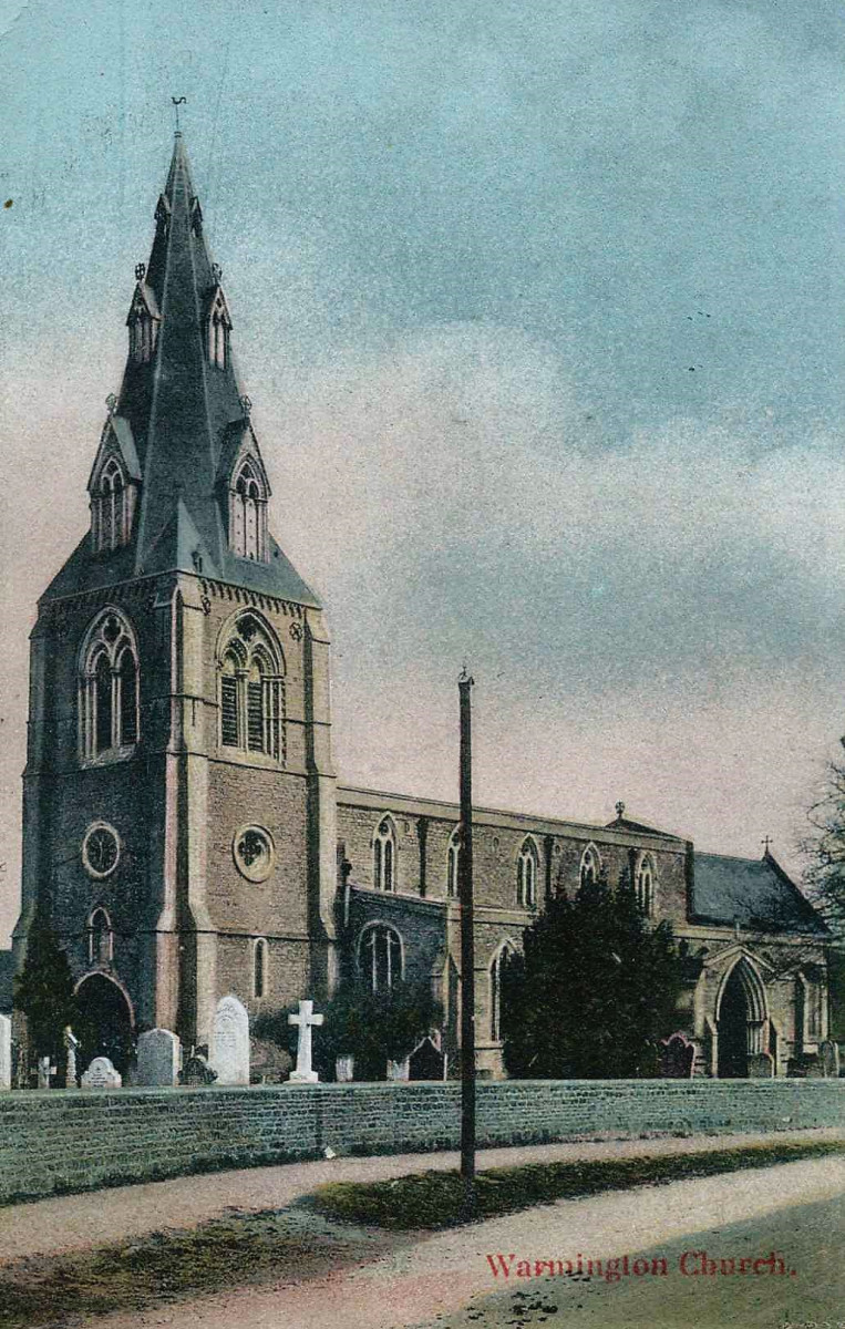 Warmington Church. Postcard postmarked 1909